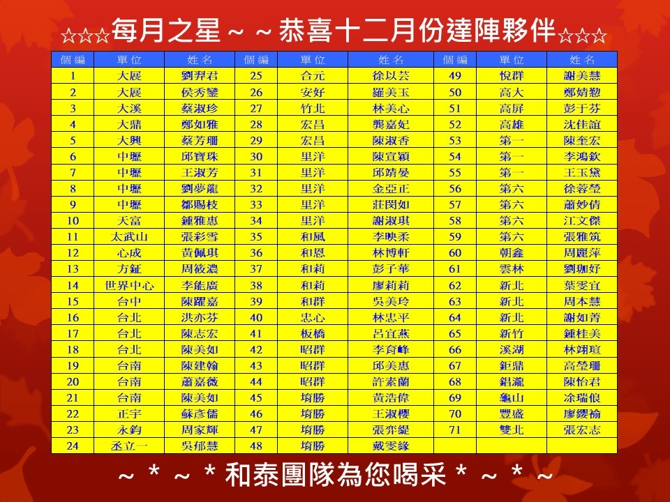 202512 每月之星