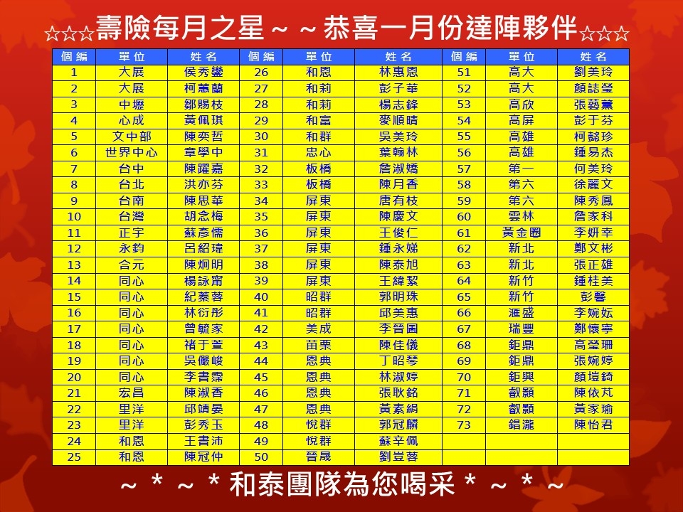 壽險每月之星